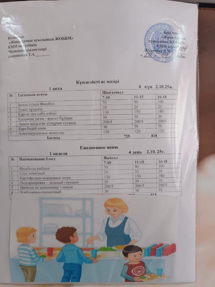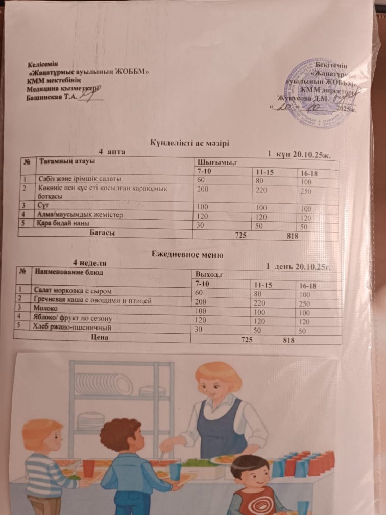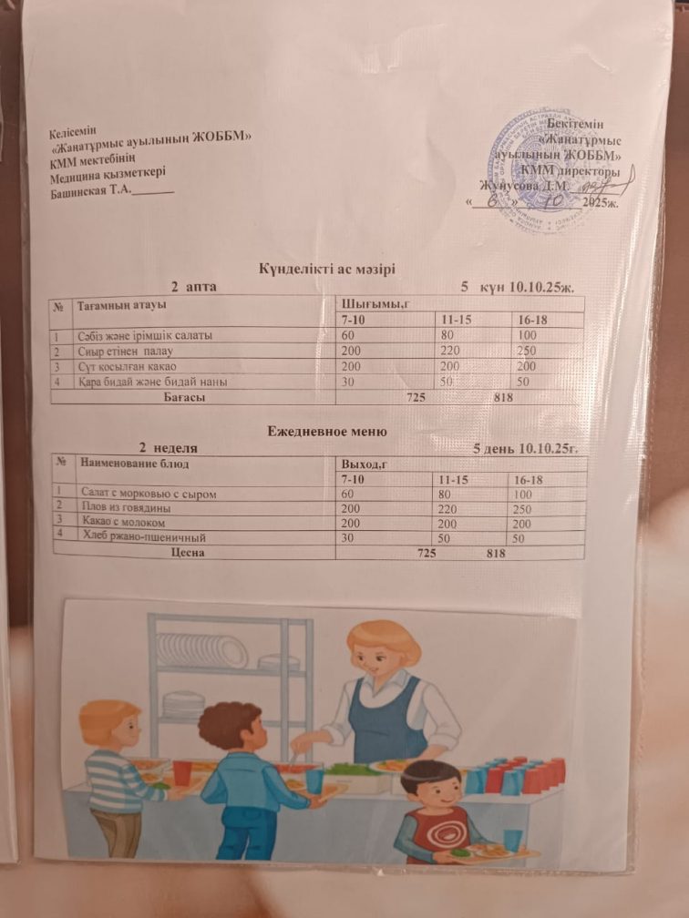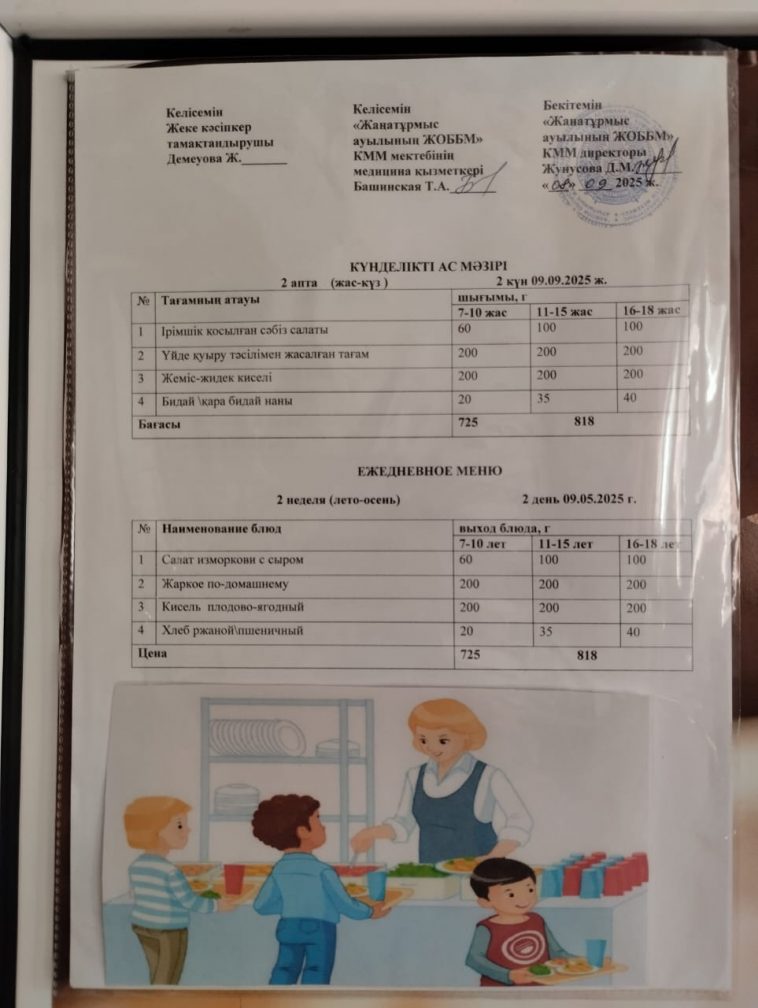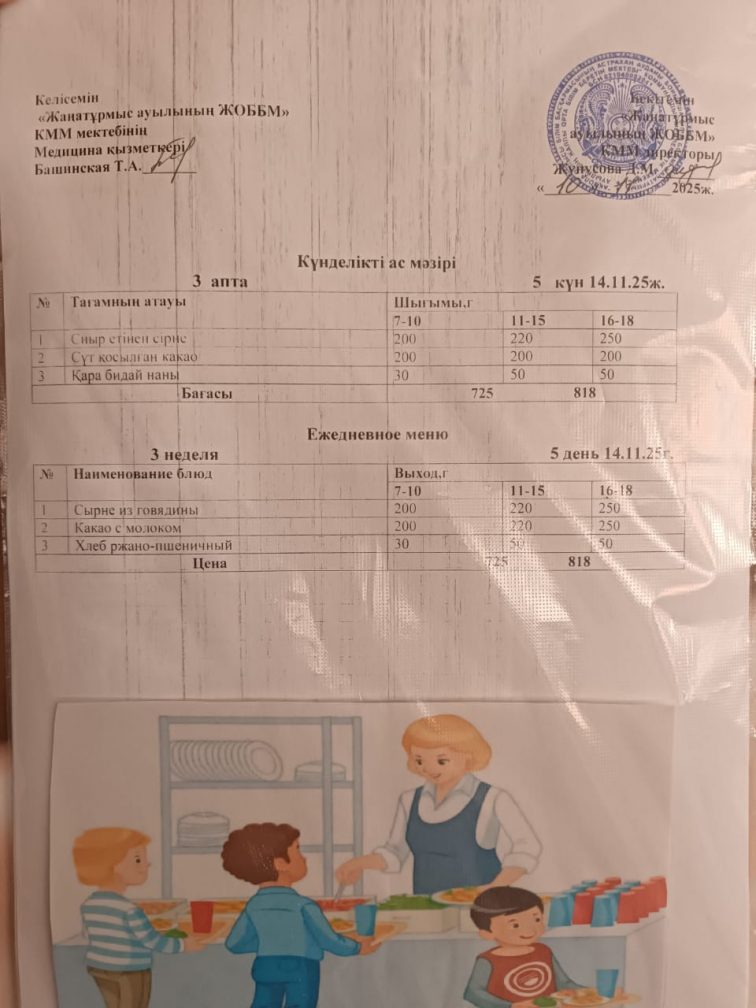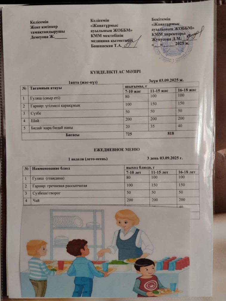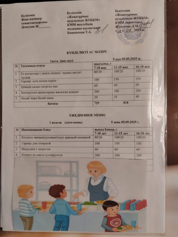 2025-2026 оқу жылылының мектептегі тамақтандыру.