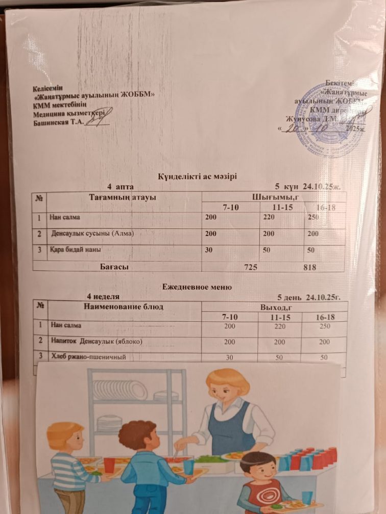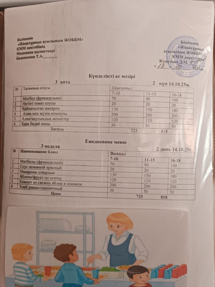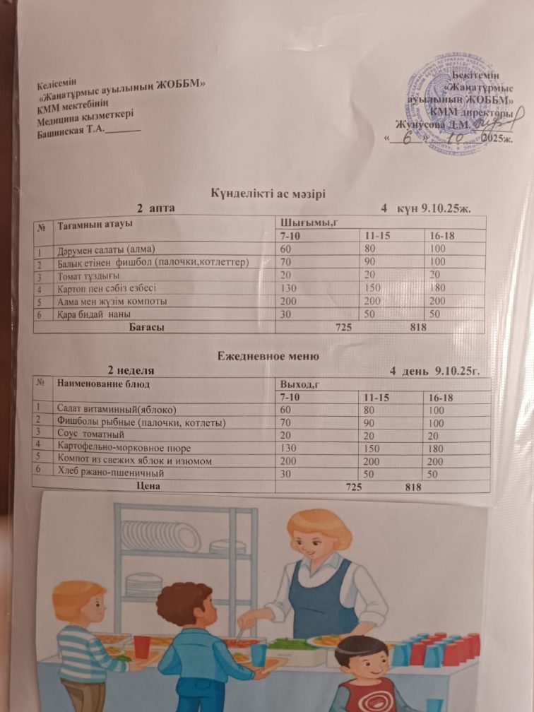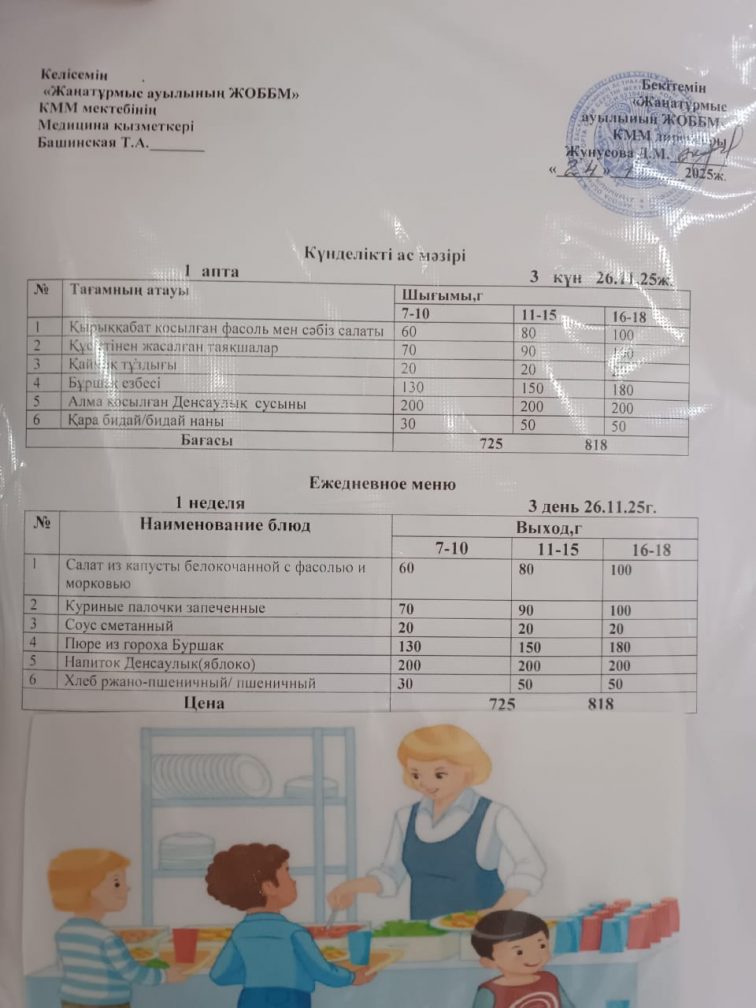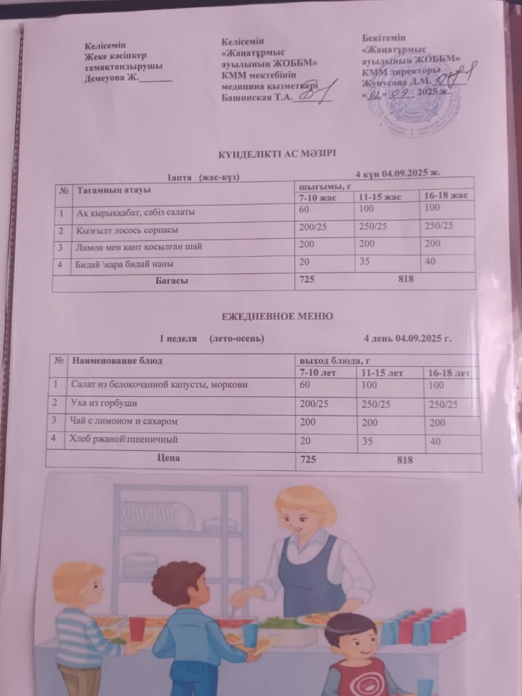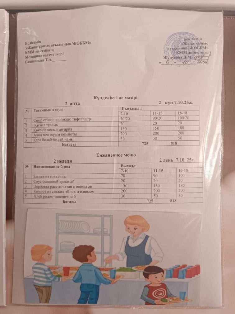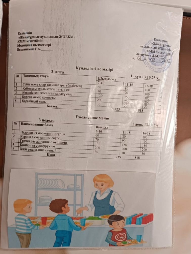 2025-2026 оқу жылылының мектептегі тамақтандыру.