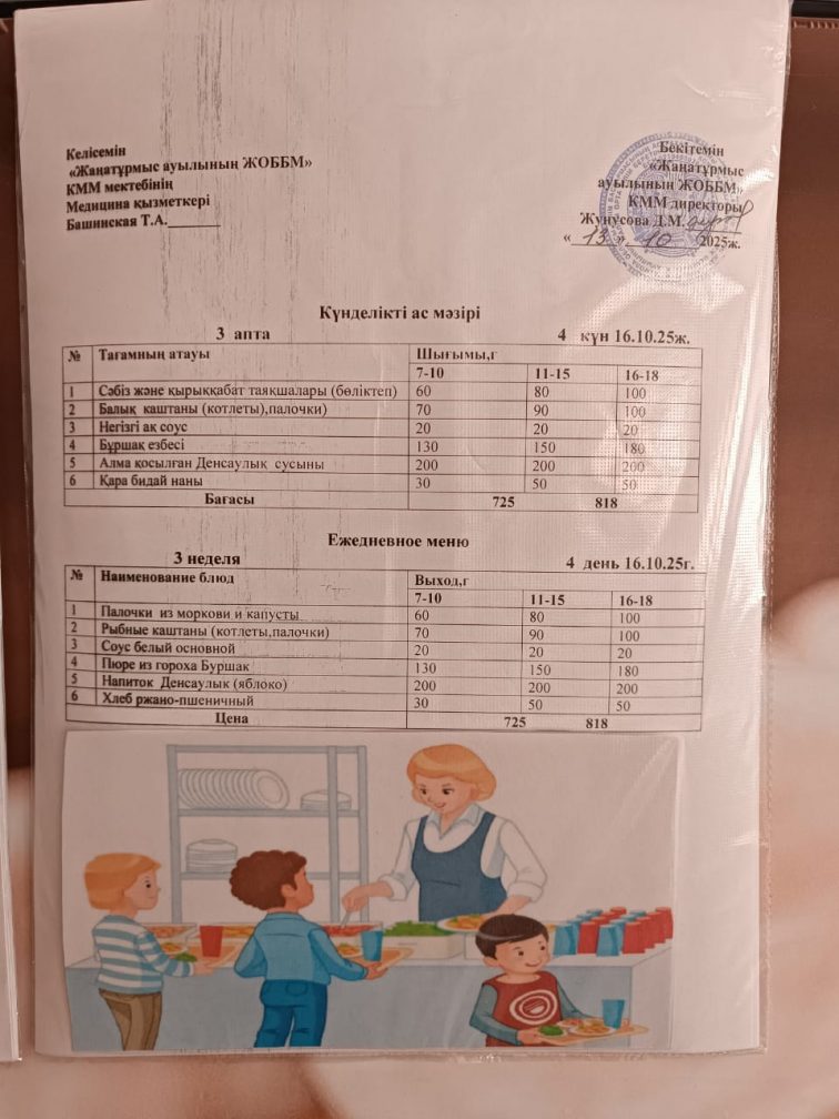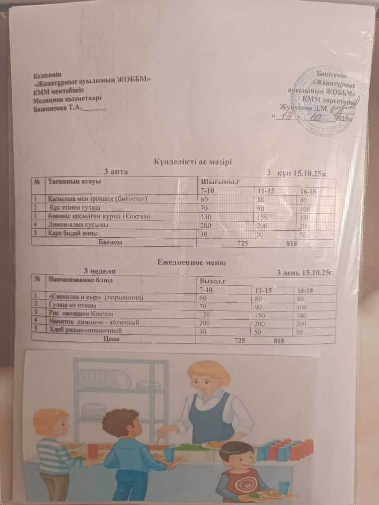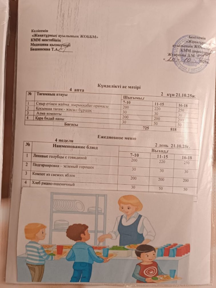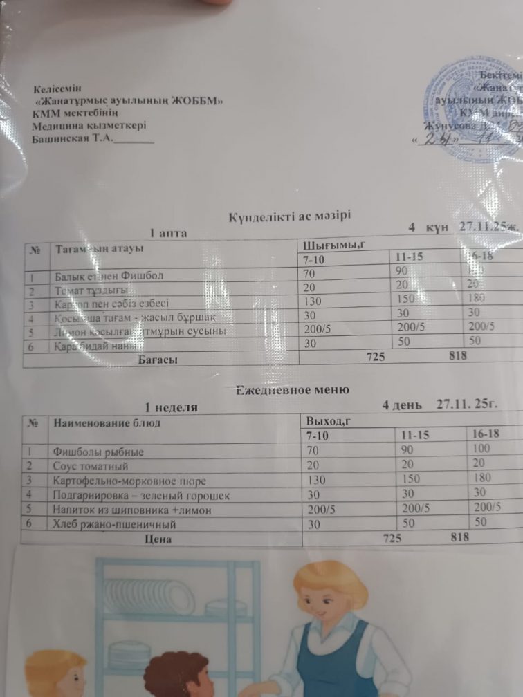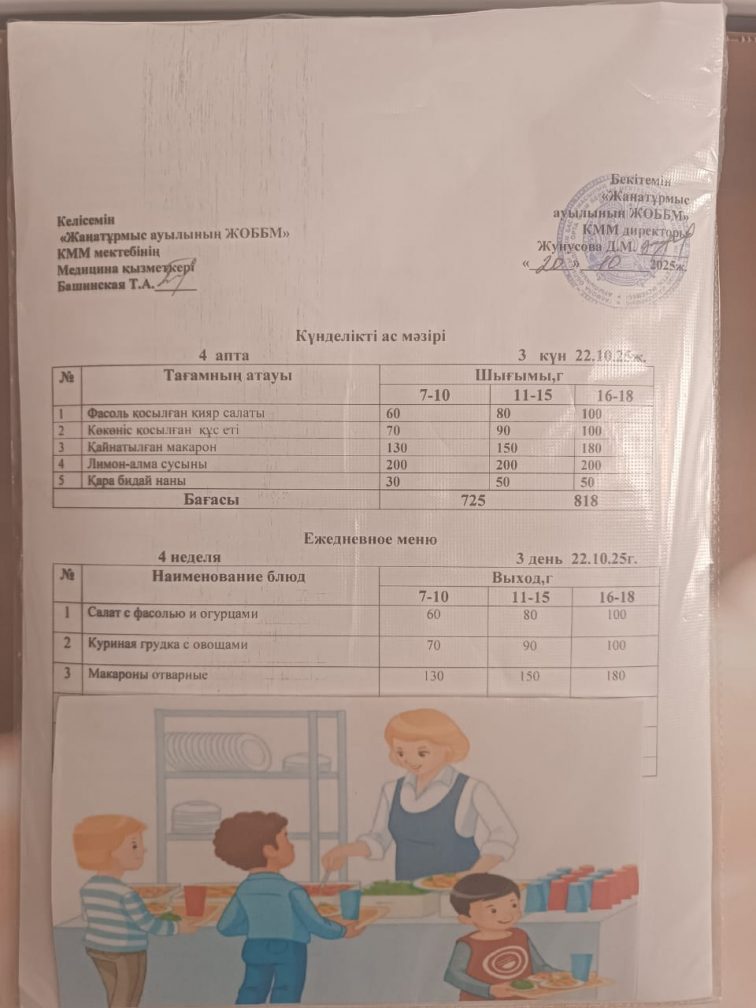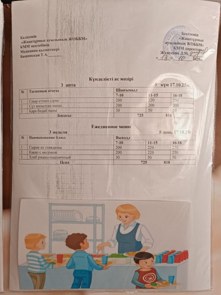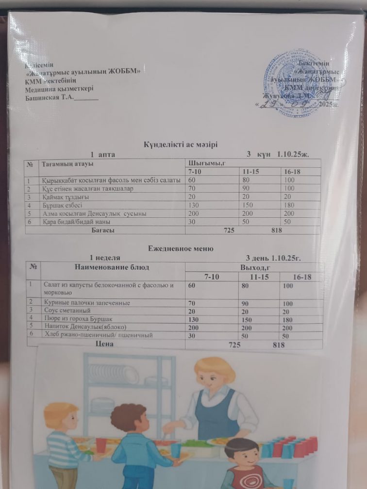 2025-2026 оқу жылылының мектептегі тамақтандыру.