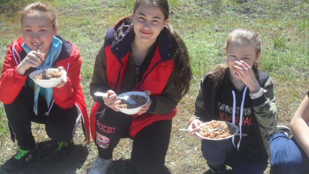 После спортивного праздника с учащимися был проведён флеш-моб. В завершении все были приглашены на пикник. Ребята с большим удовольствием поели кашу «с дымком», приготовленную родителями Акимовской ОШ на костре.